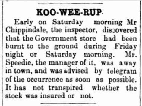 Chippindall, Robert Arthur (SN 375) Robert was a 23 year old painter when he enlisted on August 15, 1914. His next of kin was his mother, Sarah, of South Yarra. Robert died of wounds on May 17, 1915. What was his connection to the Five Mile region? His father was the grandly named Giles Tatlock Chippindall and his mother was Sarah Isaac Dawson. When Giles died at the age of 57 in 1900 his death notice said that he lived at Bunyip and was employed by the Lands Department. Giles had various government positions in Victoria and Queensland - in 1893 he was appointed as a Crowns Land Bailiff. I have found the notice, below from 1896, so I presume he was the Lands Department Inspector in the Koo Wee Rup region. Giles and Sarah had fifteen children altogether of which ten lived to adulthood and she died in 1932 aged 80. Robert's brother, Henry Dawson Chippindall, was Killed in Action at Gallipoli on August 8, 1915. Another brother, Thomas, is listed in the Electoral Roll in 1908 at Garfield, his occupation is also Crown Lands Bailiff. Yet another brother, Giles, was the Director General of Post Masters General Department and had also headed the Department of War Organisation of Industry and was knighted in 1950. Sources: Giles Chippindall's death notice The Leader July 7, 1900, see here; Sarah Chippindall's death notice The Age July 4, 1932, see here; Article on Sir Giles Chippindall, in Smiths Weekly, June 20, 1942, see here.